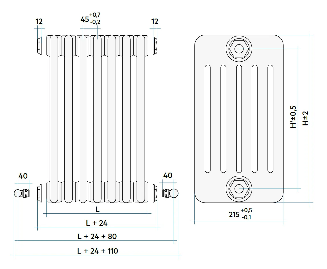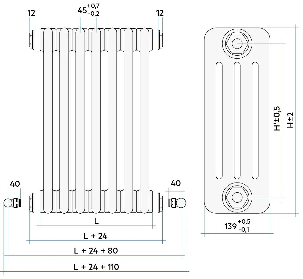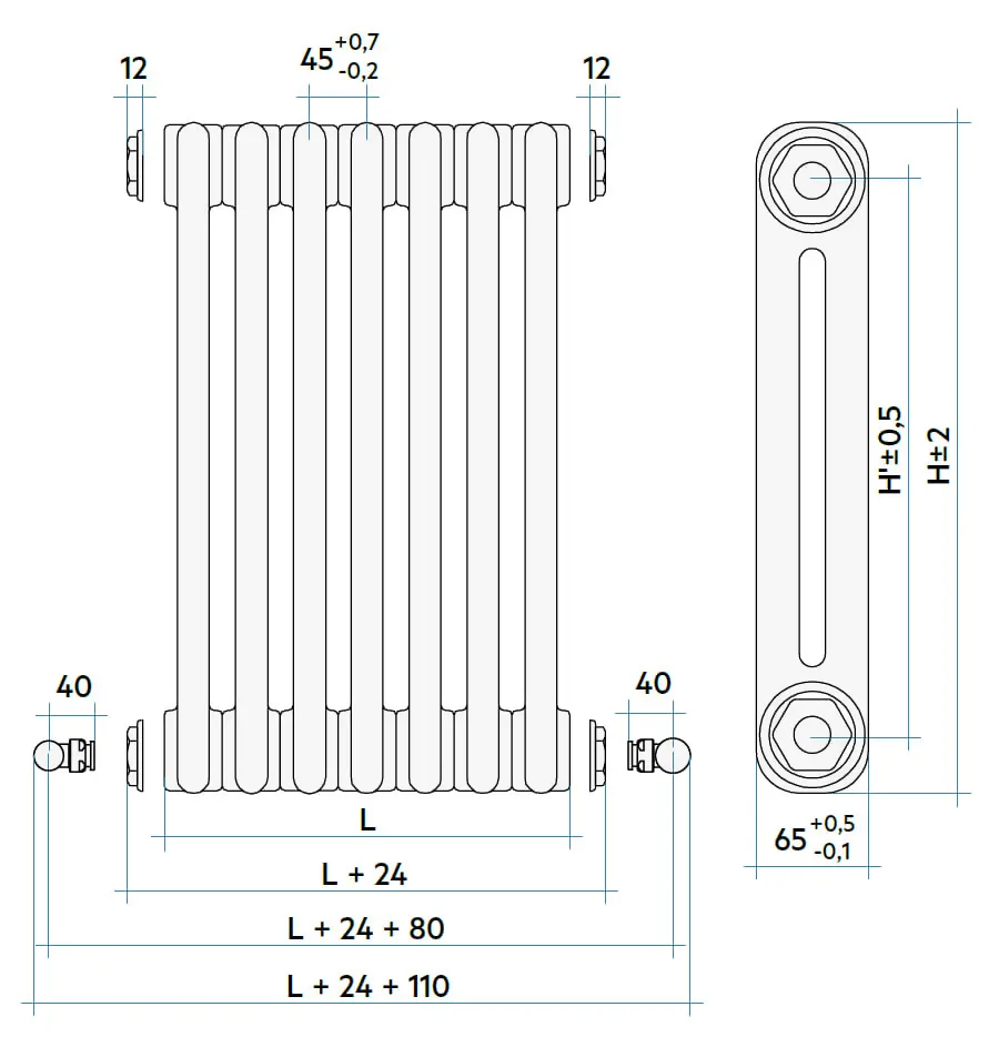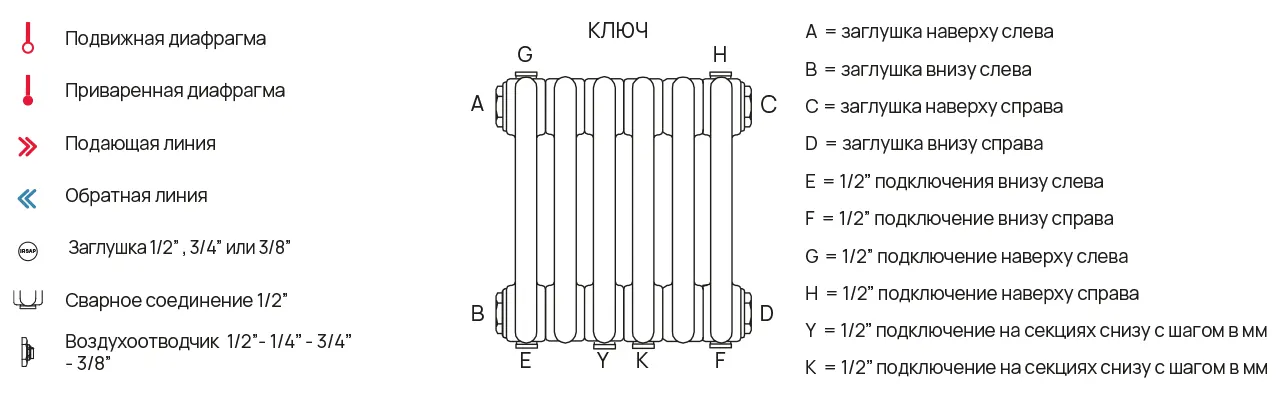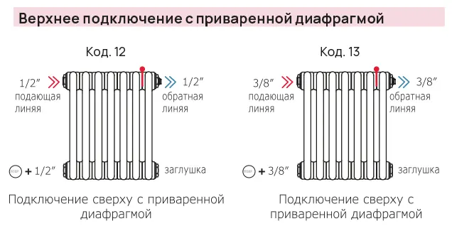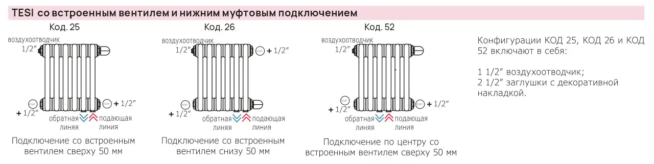 У конфигураций с кодом отмеченным (*) - воздухоотводчик и кронштейны для монтажа на стену не включены в цену радиатора.