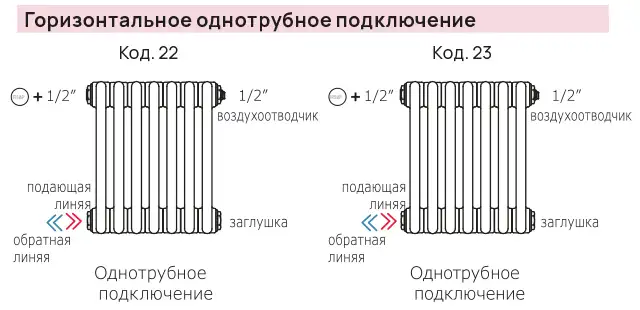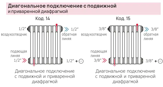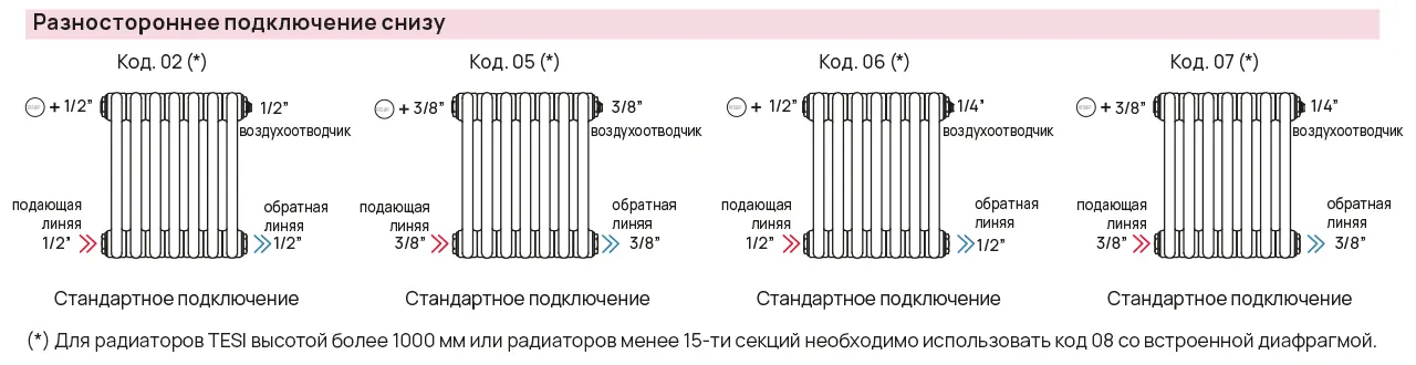 Варианты подключений радиаторов IRSAP TESI к системе отопления.