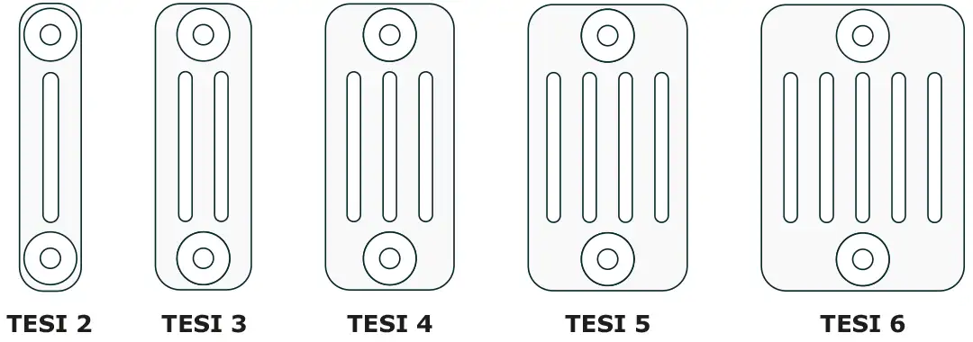 IRSAP TESI это 5 вариантов глубины радиаторов, которые легко отличимы по количеству труб, соответствующим номеру модели